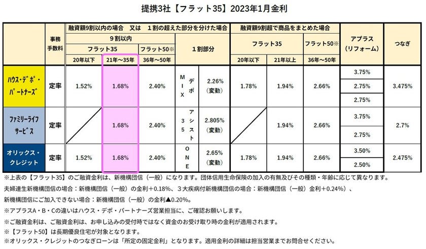 1月フラット35各社金利表