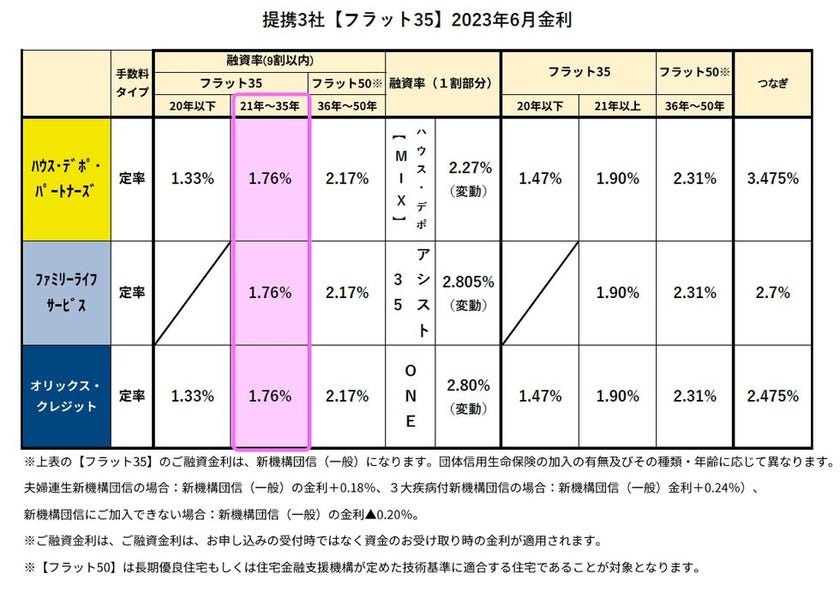 2023年6月の住宅支援機構の長期固定金利フラット35金利表になります。先月より0.7%の金利が下がっております。固定金利での住宅購入をお考えの方はこの機会をお見逃しなく!